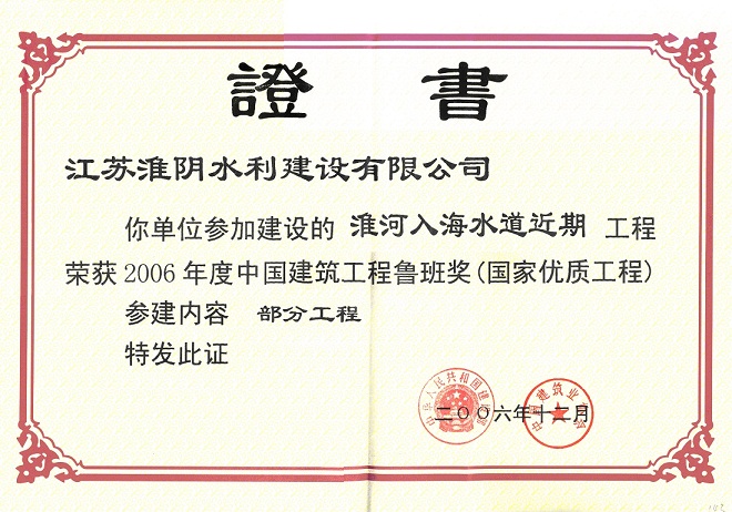 2006年度獲“中國(guó)建筑工程魯班獎(jiǎng)”;2007年獲“中國(guó)水利工程優(yōu)質(zhì)(大禹)獎(jiǎng)”;2009年獲“新中國(guó)成立六十周年百項(xiàng)經(jīng)典暨精品工程”獎(jiǎng)。